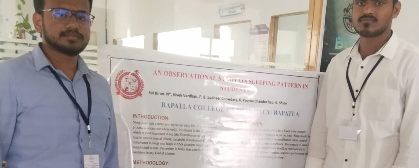 An observational Study on sleeping pattern in student . He said that he received the prize for his poster presentation. Association of Biotechnology and Phasnaly (ABAP) held under their auspices National and internal in the event