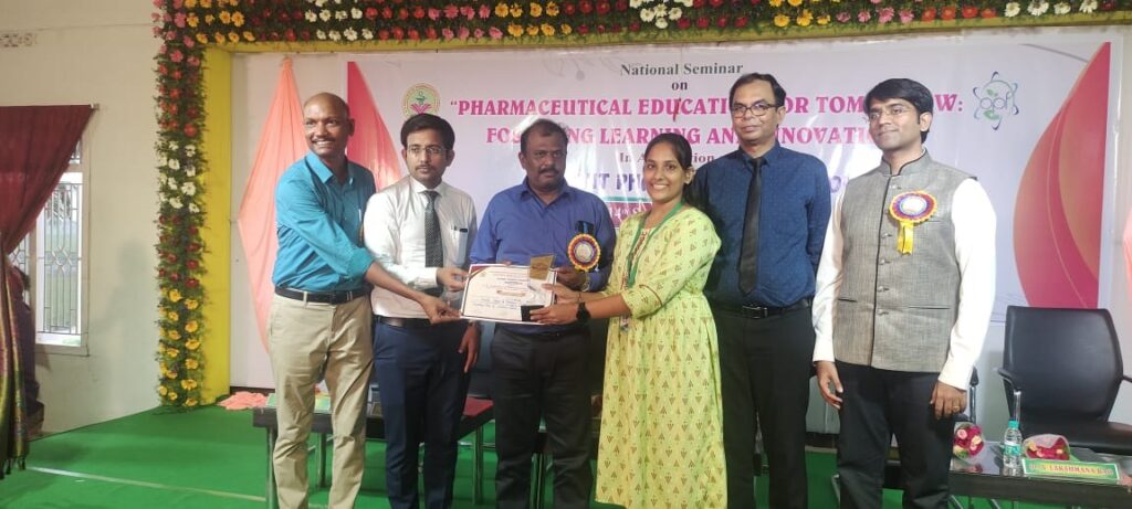 Our Student Charanya Gurram of M.Pharm(Pharmaceutics) Attended Pharmaceutical Education for Tomorrow – Fostering Learning and Innovation National Seminar conducted in VV Institute of Pharmaceutical Sciences Gudlavalleru got First Prize in the seminar. Principal Dr. T.E.Gopala Krishna Murthy, Members of Bapatla Education Society, College Staff and Students Appreciated the Achievement of Charanya Gurram