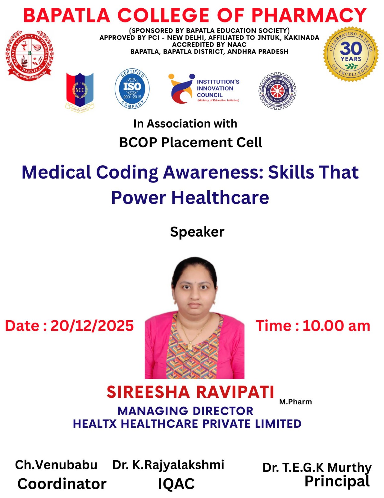 Bapatla College of Pharmacy has facilitated me in exploring my interests and succeeding in my studies, and it was a community that made me feel genuinely welcome. Through tremendous support from faculty and staff, I have been able to transition well from online to face-to-face learning, especially in the challenging classes, and in navigating through campus life as an international student. Thanks to the Principal, Staff and Management for the support